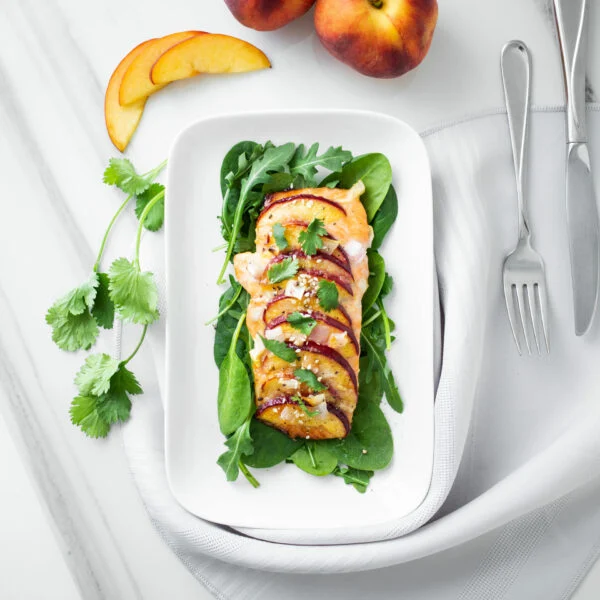 Salmon with Chilean Peaches, Ginger and Maple Syrup