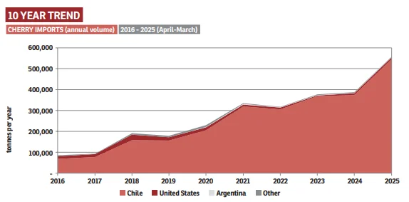 China es el principal mercado de exportación de la cerezas chilena, siendo responsable de aproximadamente el 91% del volumen exportado. Como tal, China es también el principal foco de la inversión promocional anual que realiza el Comité de Cerezas de Chile en sus principales mercados de destino.