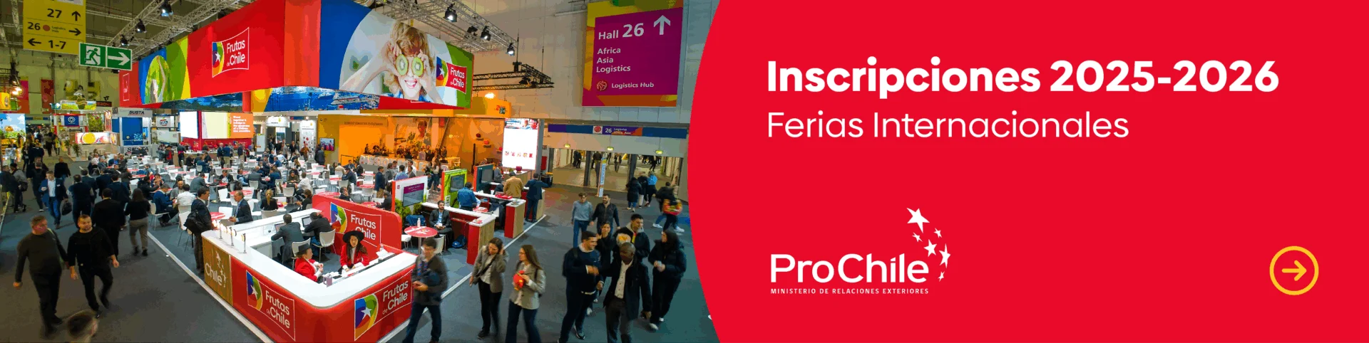 Frutas de Chile en conjunto con la Dirección General de Promoción de Exportaciones de Chile (ProChile) están organizando la participación de Chile en las principales ferias del rubro frutícola durante la temporada 2025-2026.