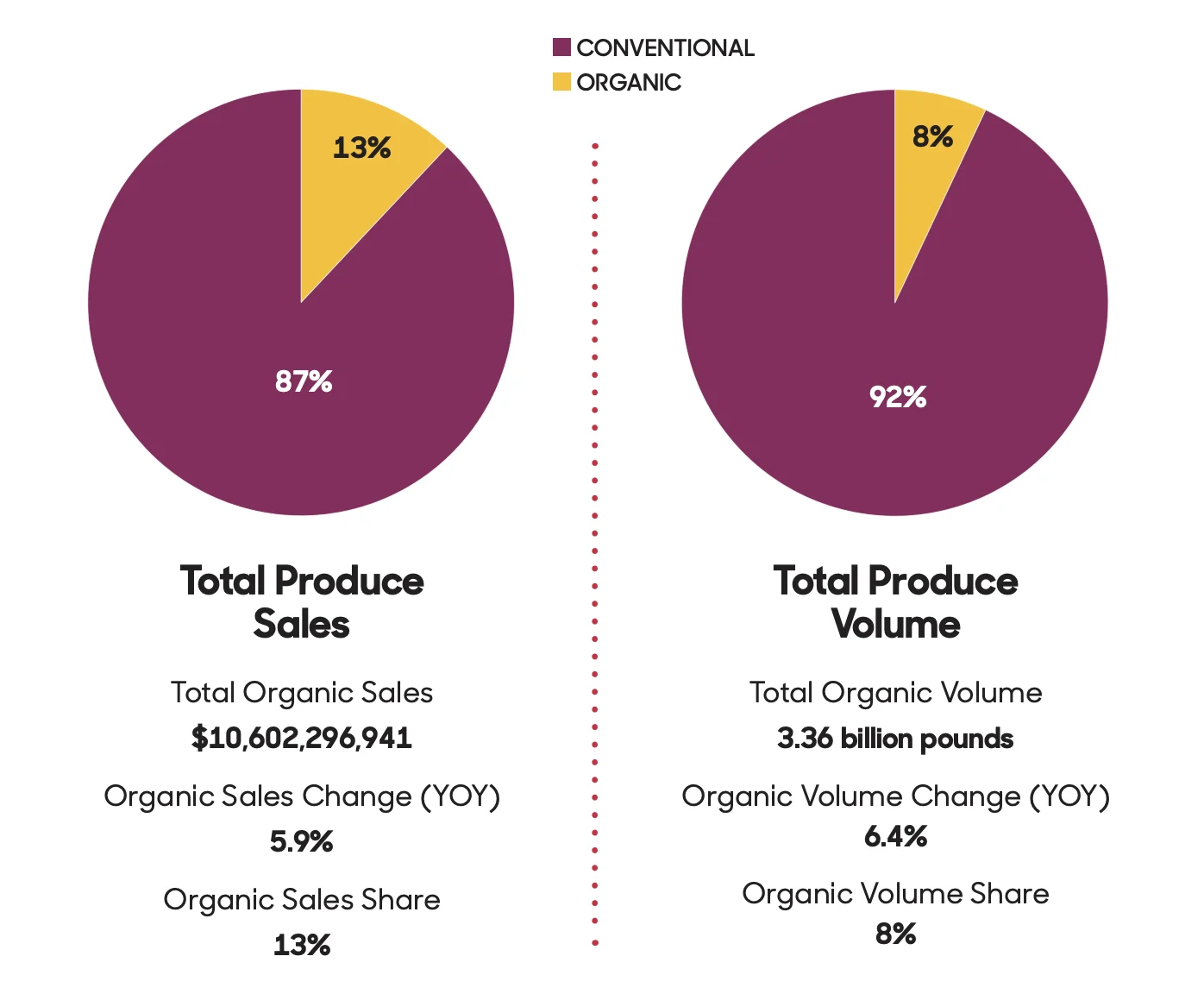 Lo más destacado de este balance es que el ritmo de crecimiento orgánico fue casi cinco veces superior al de los productos convencionales, que apenas registraron un avance del 1,3% en ventas y del 0,9% en volumen total. Actualmente, los productos orgánicos ya representan el 13% de todas las ventas minoristas de productos agrícolas en el país.