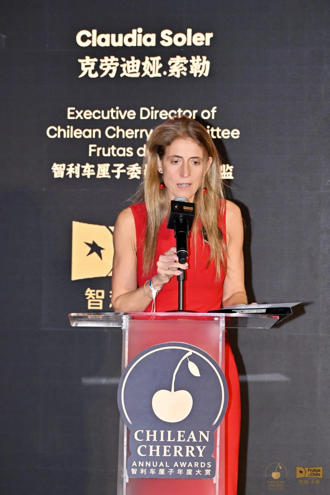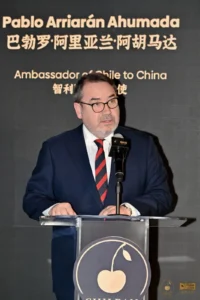 La ceremonia contó con la participación de Pablo Arriarán Ahumada, Embajador de Chile en China; Yu Lu, vicepresidente de la Cámara de Comercio de China para la Importación y Exportación de Alimentos y Claudia Soler, directora Ejecutiva del Comité de Cerezas de Chile.