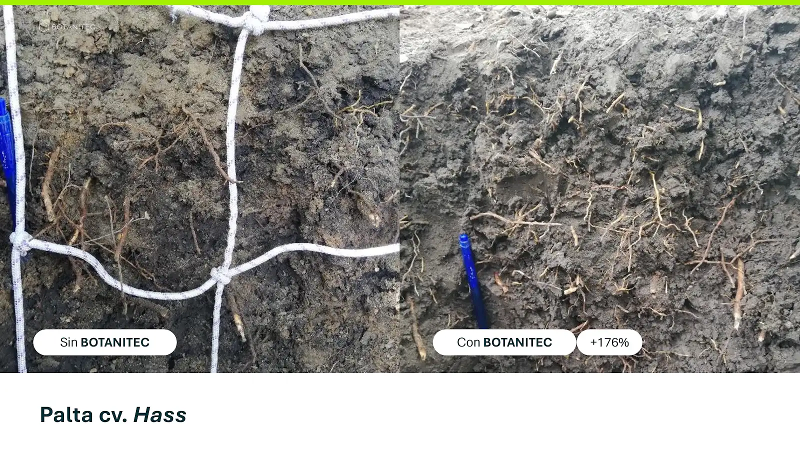 Las imágenes de las calicatas muestran densidades radicales visiblemente superiores, lo que es determinante para: