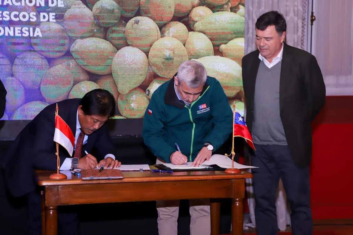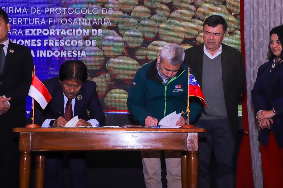 El ministro de Agricultura, Esteban Valenzuela, junto al jefe de la Agencia de Cuarentena de Indonesia (IQA), Sahat M. Panggabean, firmaron un nuevo Memorándum de Entendimiento que permitirá el ingreso de limones frescos chilenos al mercado indonesio.