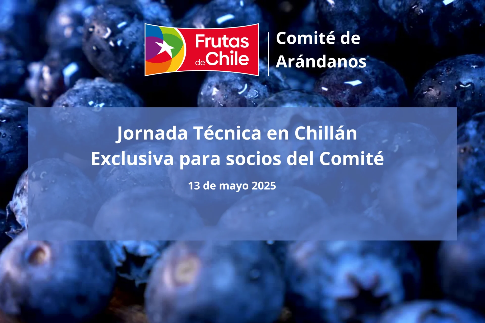 La primera Jornada Técnica del año 2025, exclusiva para socios, se realizará el martes 13 de mayo de 2025, 8:30 a 13:00, Hotel Diego de Almagro de Chillán. Y está orientada a todos los profesionales y técnicos de las empresas socias del Comité de Arándanos de Frutas de Chile.