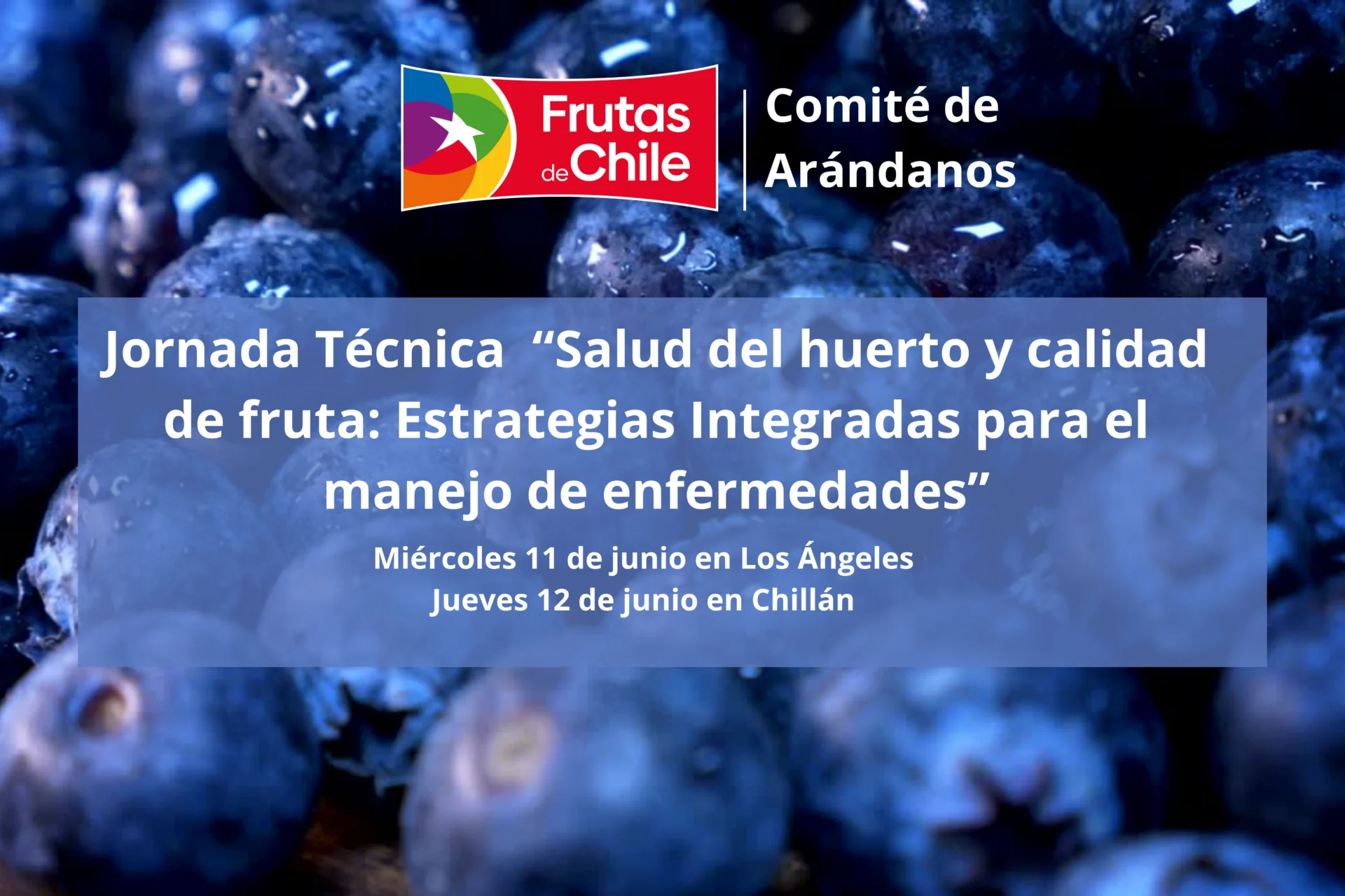 El Comité de Arándanos de Frutas de Chile, conjuntamente con el Cómité Corfo Ñuble (CDPR Ñuble), han organizado la jornada técnica “Salud del huerto y calidad de fruta: Estrategias Integradas para el manejo de enfermedades”, la cual se llevará a cabo el miércoles 11 de junio en Los Ángeles; y el jueves 12 de junio en Chillán.