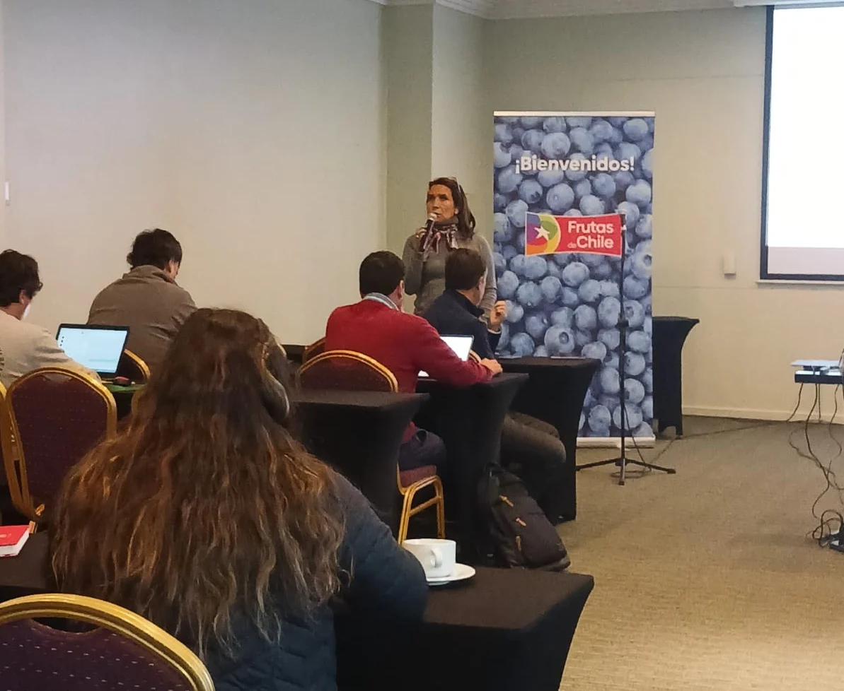 “El valor de este taller está en que los resultados presentados son propios del Comité, con información dura y validada estadísticamente. Esto permite a los socios tomar decisiones con evidencia concreta sobre qué tecnologías adoptar o dónde enfocar mejoras”, indicó Julia Pinto, gerente técnico del Comité de Arándanos de Frutas de Chile.