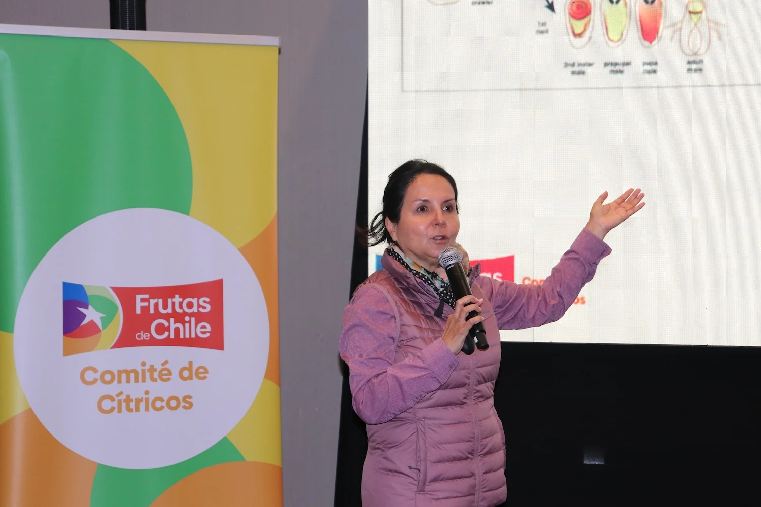 El Comité de Cítricos, respondiendo a una necesidad de la industria encargó a la entomóloga, Natalia Olivares, un proyecto de investigación que determinara el ciclo de vida de la escama roja a nivel regional. Durante su exposición, la profesional dio a conocer los resultados obtenidos a la fecha en Chile: “Se detectaron tres ciclos de la escama roja de los cítricos, y no cinco o seis como ocurre en otros países, lo cual, en la práctica significa que “la sobreposición de los estados de desarrollo es menor”.