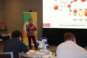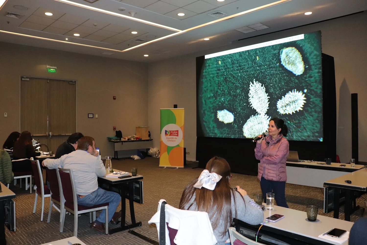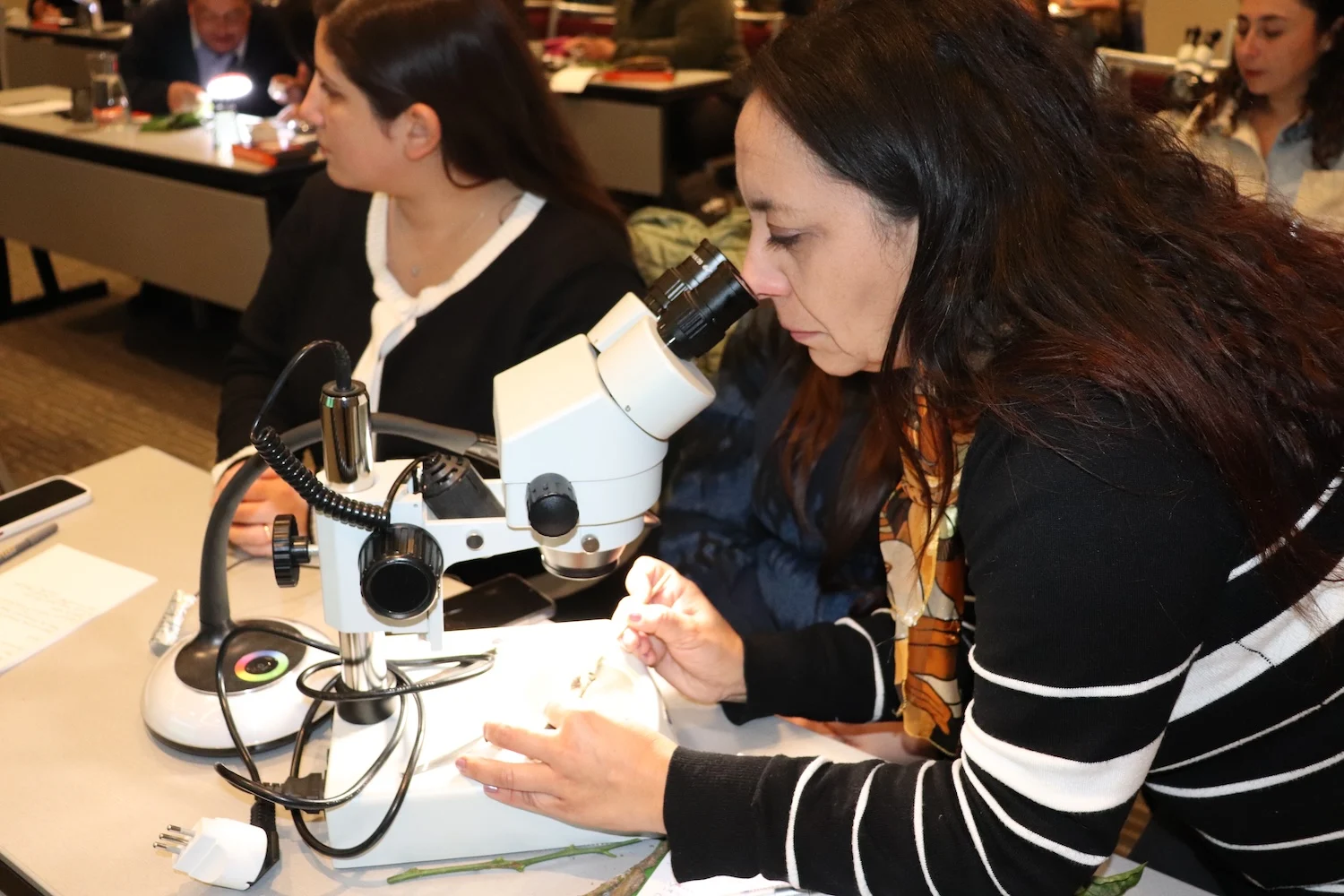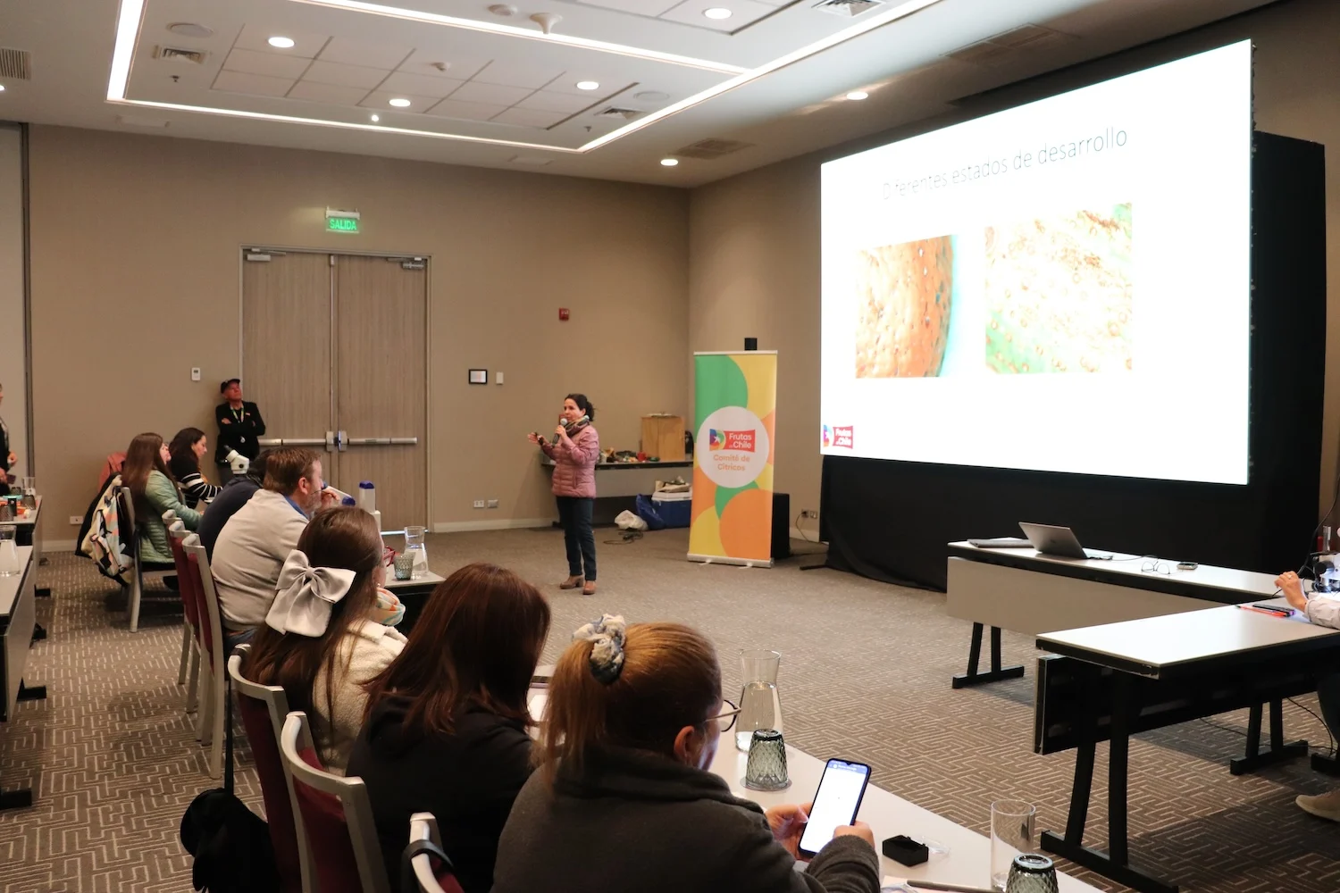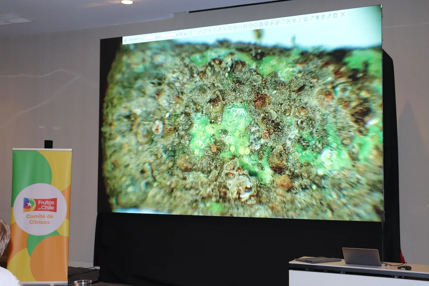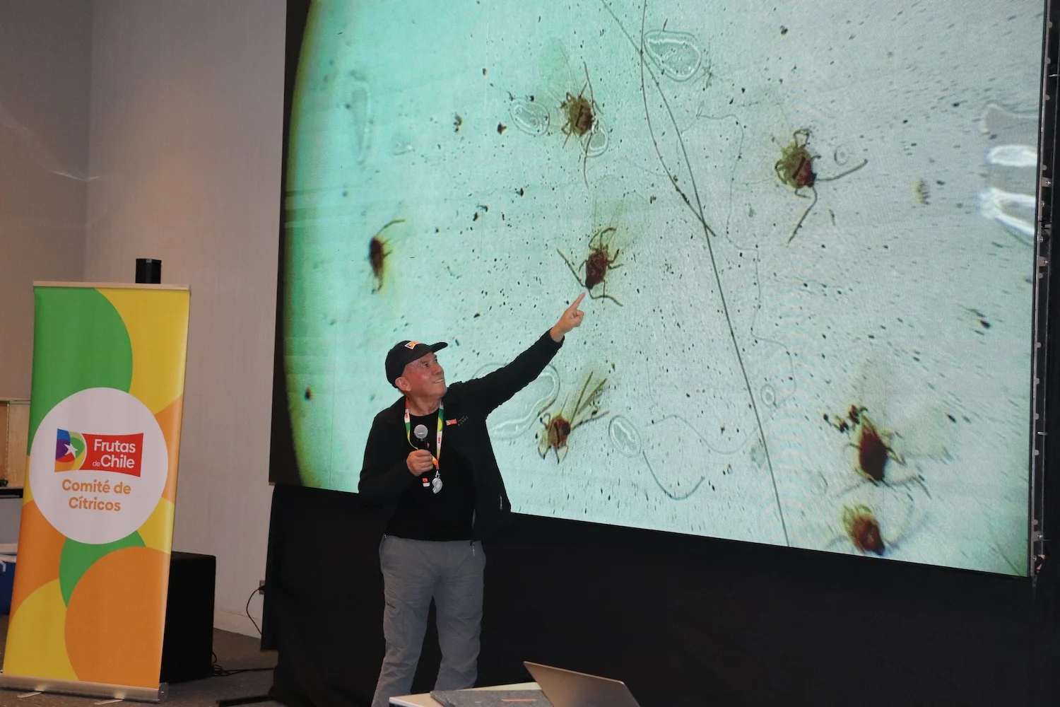 El Comité de Cítricos de Frutas de Chile, realizó recientemente un taller teórico-práctico para socios denominado: “Reconocimiento de especies de pseudocóccidos y de estados de desarrollo de la escama roja de los cítricos (Aonidiella aurantii)”, el cual, contó con una gran asistencia, realizándose en dos ciudades: Santiago y Coquimbo.
