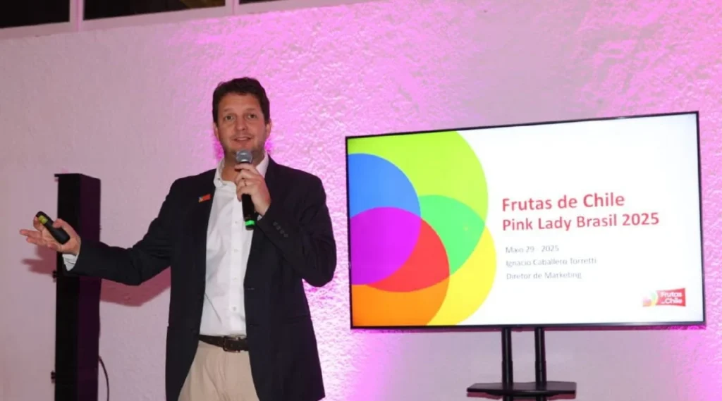 El director ejecutivo del Comité Pink Lady de Frutas de Chile, Ignacio Caballero, llegó hasta Sao Paulo, Brasil, para lanzar oficialmente la temporada de exportaciones de manzanas chilenas Pink Lady®️ y las acciones promocionales que potenciarán su consumo en el mercado carioca.