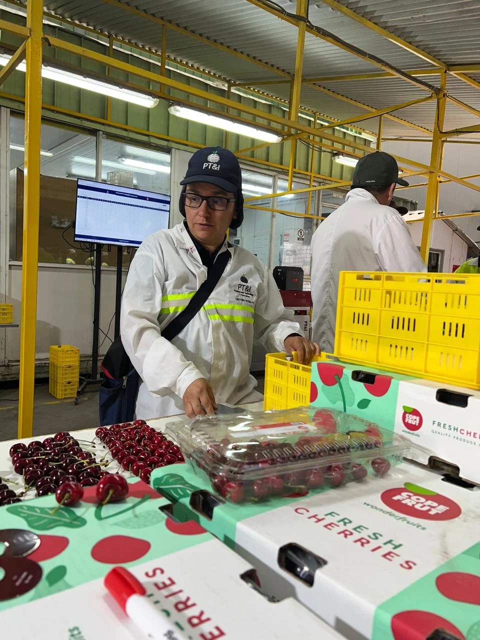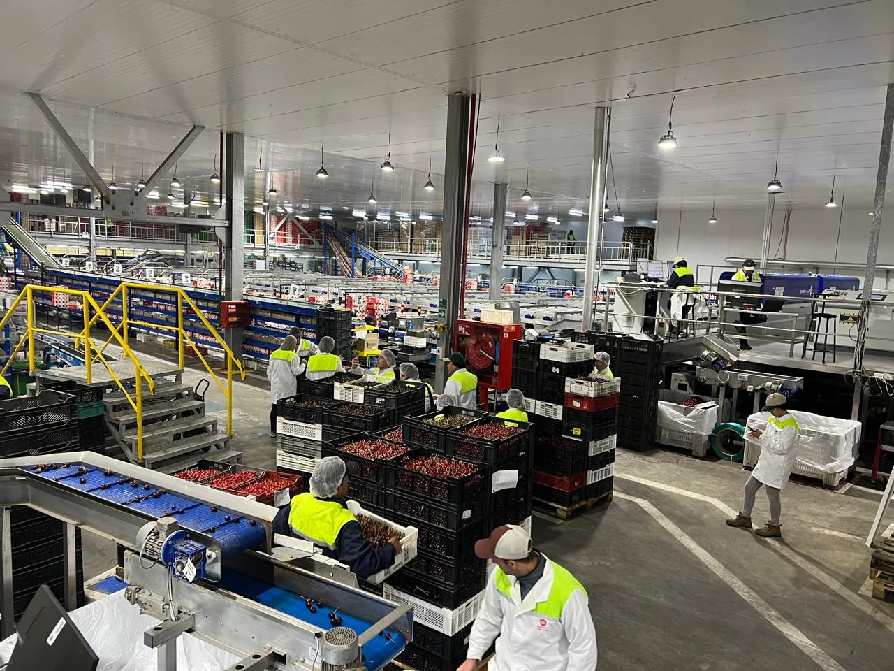 Luego, la fruta pasa a cámaras de frío y entra al proceso industrial propiamente tal, donde se utiliza un selector electrónico de alta tecnología que analiza fruto a fruto, tomando entre 15 y 20 fotos por cereza para clasificarla por tamaño, color y defectos. Después de esa selección, la fruta se embala en distintos formatos de acuerdo con las exigencias de cada mercado o programa comercial.