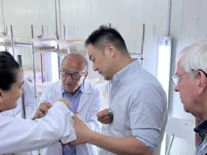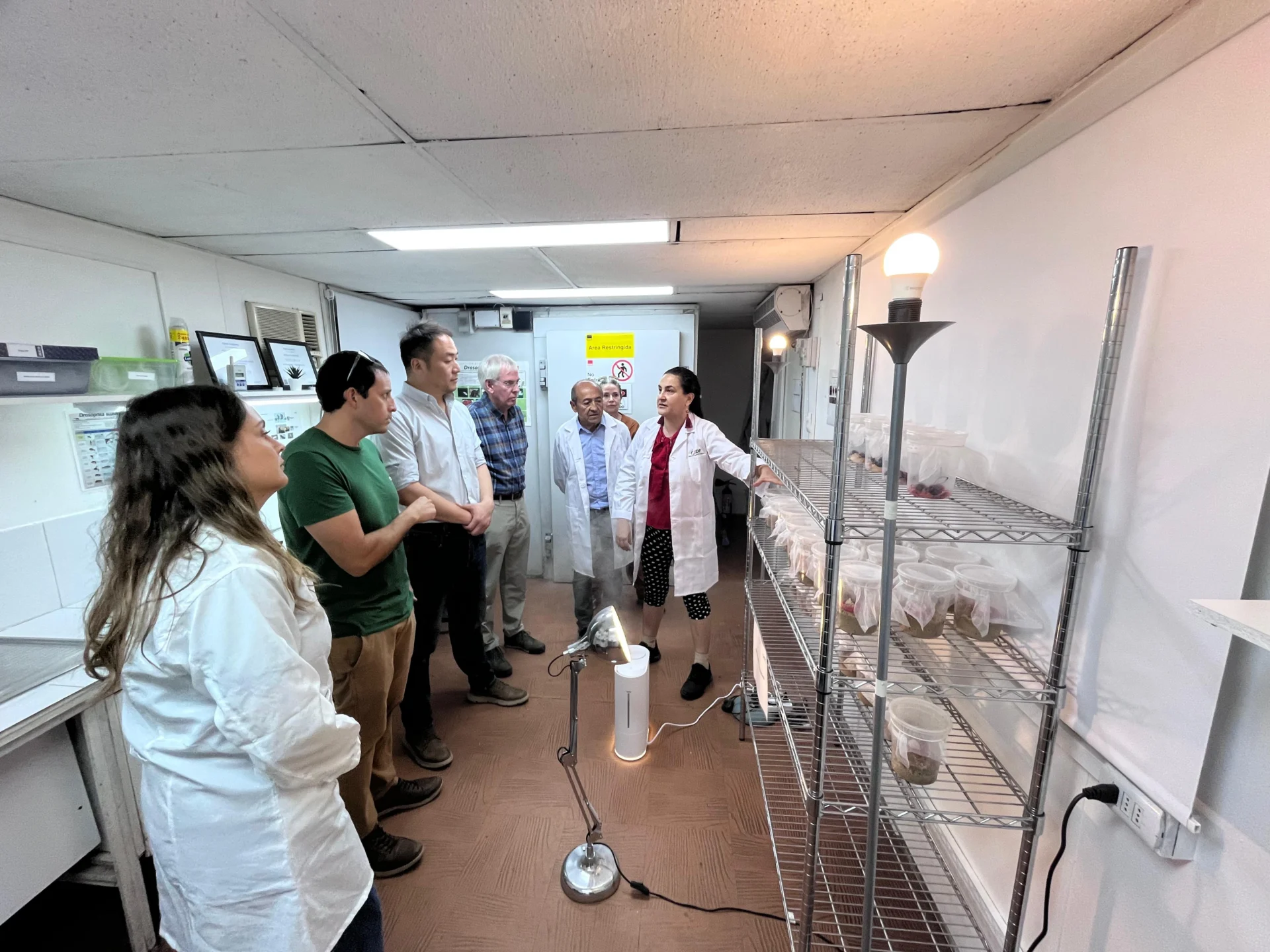 Los visitantes fueron recibidos por Francisco Letelier, presidente de FDF; Francisco Albornoz, gerente de administración y finanzas de FDF; además de los profesionales David Castro, jefe del Área de Entomología Cuarentenaria de FDF y Susana Izquierdo, ingeniera agrónoma e investigadora de esa misma área.