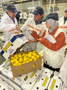 La delegación fue recibida por profesionales del Servicio Agrícola y Ganadero (SAG), Frutas de Chile y su Comité de Cítricos. «Entre los días 23 y 28 de junio recién pasados, inspectores del IQA de Indonesia visitaron distintas regiones del país,  específicamente  Ñuble, Valparaíso y la región Metropolitana, con la finalidad de recorrer huertos y packings de limones, conociendo in situ la situación fitosanitaria de este cultivo, así como también todo el proceso operativo de las plantas embaladoras. Asimismo, visitaron distintos laboratorios para poder verificar todo lo que es la parte analítica en relación a inocuidad. Esta visita fue muy satisfactoria y nos va a permitir en el corto y mediano plazo aperturar el mercado indonesio para los limones chilenos, lo cual entregará a los productores y exportadores de limones contar con un mercado más donde entregar esta fruta»,  indicó Marco Muñoz, jefe de la División Agrícola y Semillas del SAG.