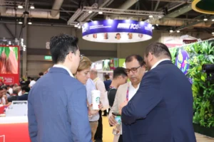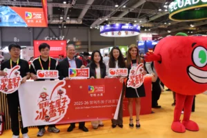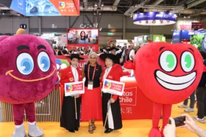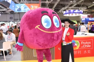 Frutas de Chile se presentó nuevamente en se hizo presente en Asia Fruit Logística con un pabellón que destacó por su colorido color y porque, durante toda la primera jornada que comenzó hoy (hora de China), siempre estuvo lleno. Y no es para menos, pues Chile está ad portas de comenzar la nueva temporada 2025-26, y los importadores, retailers y representantes de los mercados mayoristas de China y Asia, quieren conocer qué nuevo hay en la industria y aprovechar de establecer relaciones de negocios con las empresas chilenas que se encuentran participando.