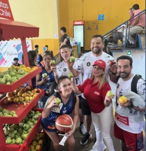 Con el objetivo de vincular la alimentación saludable que representan las frutas con la actividad física, Frutas de Chile llevó a cabo una exitosa activación durante la reciente Clínica de Básquetbol realizada en el Estadio y Gimnasio Municipal de San Fernando. Durante tres jornadas consecutivas, la organización distribuyó cientos de kilos de fruta fresca entre niños, jóvenes y adultos participantes.