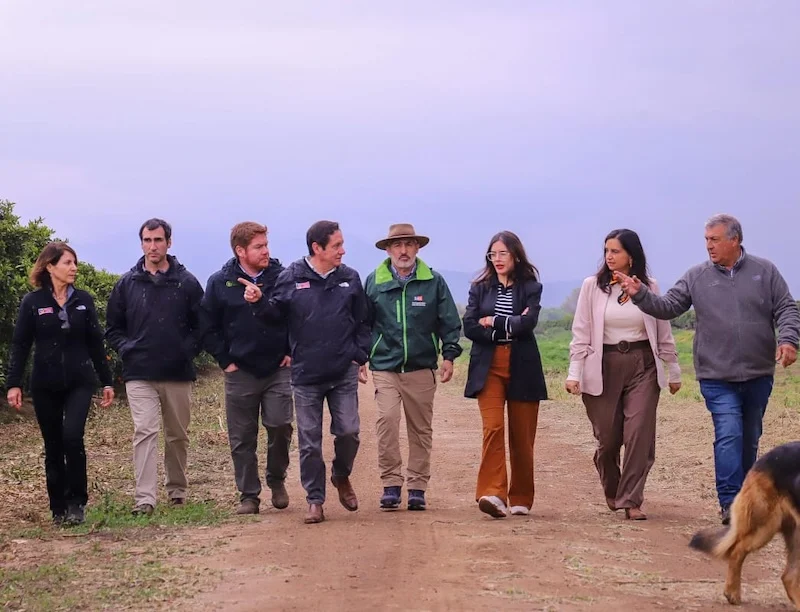 Hasta un huerto de naranjas de exportación del Fundo Sociedad Agrícola Famosa en Curicó llegaron la Ministra de Agricultura, Ignacia Fernández; la Ministra de la Secretaria General de Gobierno, Camila Vallejo, el Director Nacional del SAG, José Guajardo; el gerente general de Frutas de Chile, Miguel Canala-Echeverría, y la Directora Ejecutiva del Comité de Cítricos de Frutas de Chile, Monserrat Valenzuela, quienes fueron recibidos por el Encargado del Programa de Cítricos de Gesex, Gonzalo Pedreros, el productor del Fundo Sociedad Agrícola Famosa, Alfredo Labbé, y el gerente de producción Empresa Exportadora Gesex, Andrés Undurraga.