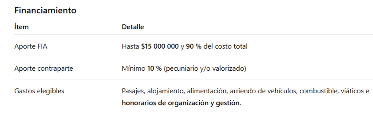 • Apoyo financiero real: cubre hasta el 90 % de los costos, incluida logística y organización.