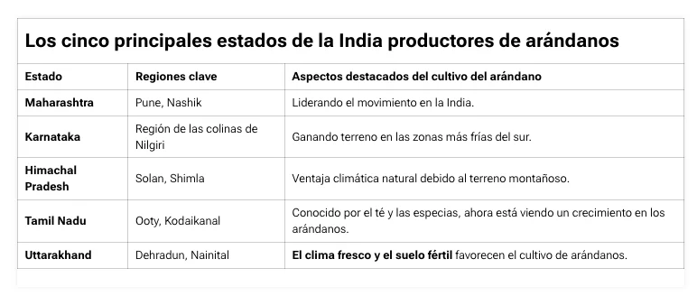 ¿Qué estado produce más arándanos en la India?