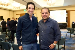 Rodrigo Vallejo y David Farben de Ro2media, agencia escogida para el diseño de la  campaña «Have a Grape Day 2.0», remarcando que el objetivo es posicionar la uva de mesa como el snack ideal en momentos cotidianos, destacando su versatilidad y sus atributos saludables.