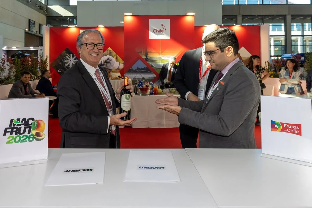 La firma fue suscrita por el presidente de Macfrut, Patrizio Neri, y el secretario general de Frutas de Chile, Rodrigo Gallardo, quien destacó la importancia del acuerdo para seguir potenciando la presencia de la fruta nacional en Italia y los mercados de Europa. «La presencia de la fruta chilena fue contundente. La feria facilitó un espacio de intercambio técnico y tecnológico con las empresas socias de Frutas de Chile que fueron parte de la delegación. Pudimos ver tendencias en tecnología de pre y poscosecha, así como especies especializados dedicados a los berries, innovaciones y start-up, así como también proveedores internacionales consolidados en nuestra industria», observó.