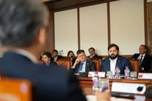 Añadió que “requerimos y buscamos alianzas con países como Corea, con quienes podemos intercambiar experiencias que aporten al desarrollo científico tecnológico de nuestro país y también, como decía antes, el intercambio cultural. Queremos que empresas coreanas que ustedes representan participen activamente en los nuevos motores de crecimiento de Chile, en el litio, en el hidrógeno verde, en la electromovilidad, en las energías renovables, en la economía digital”.