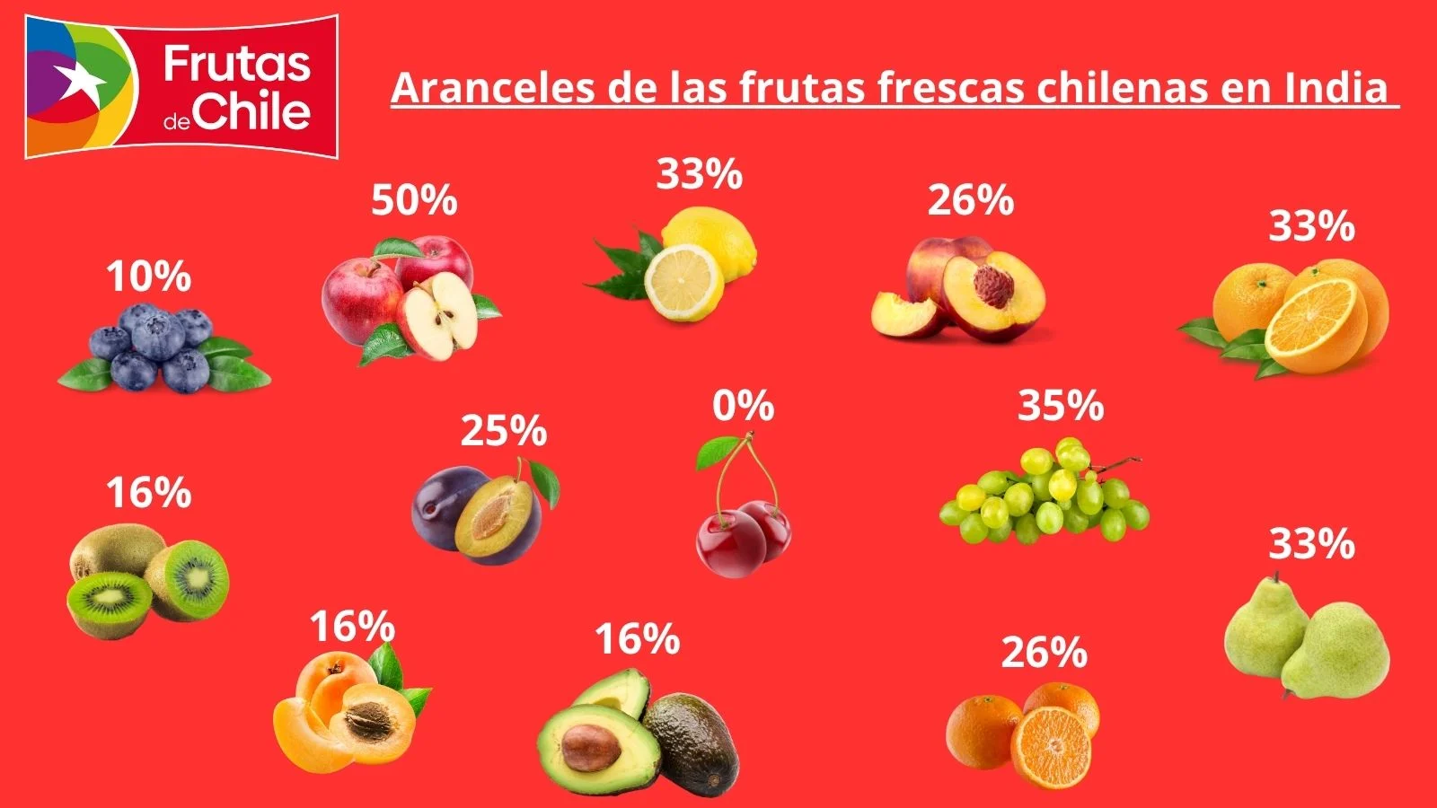 El presidente de Frutas de Chile, Iván Marambio, destacó la importancia del CEPA para las exportaciones frutícolas del país, pues «abre las posibilidades de discutir diversos temas, y uno los más relevantes para el sector frutícola son los aranceles». Agregó que «hoy existe una alta carga de impuestos que enfrentan las frutas chilenas en el mercado indio, pero también otros productos como los vinos que soportan un gravamen del 150%, las nueces, del 100%, mientras que las manzanas tienen aranceles de 50% y los kiwis, 16%, dos importantes frutas nacionales enviadas al mercado indio», puntualizó.