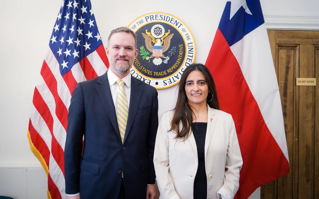 La subsecretaria de Relaciones Económicas Internacionales (SUBREI), Claudia Sanhueza, lideró ayer una reunión con el representante comercial de Estados Unidos (USTR), Jamieson Greer. La autoridad estuvo acompañada por el embajador de Chile en Estados Unidos, Juan Gabriel Valdés, y los equipos técnicos de la Subrei y del Ministerio de Hacienda.