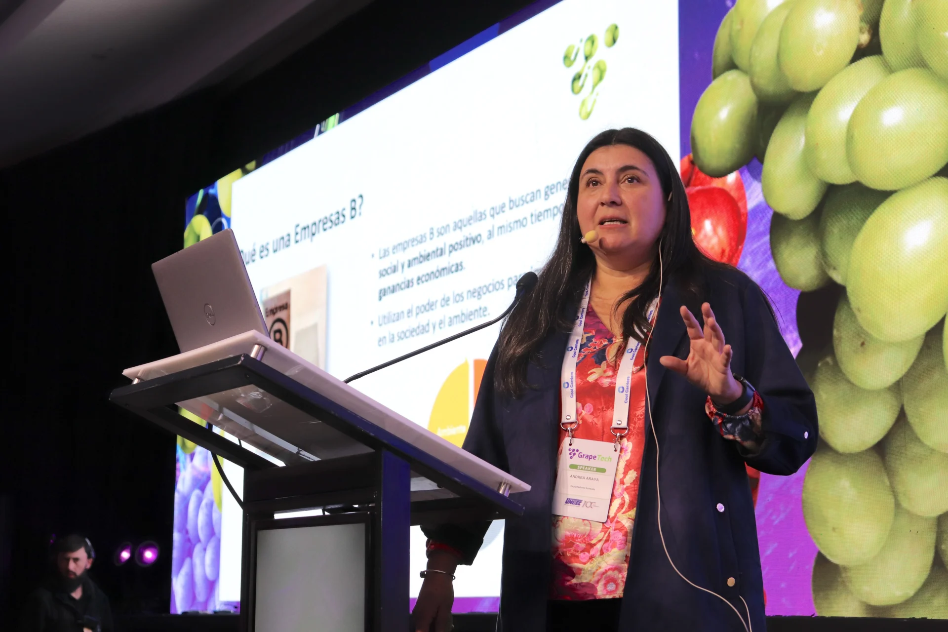 Durante el Grape Tech 2025,  Andrea Araya Bosch, Gerenta de Sustentabilidad y Gestión Técnica de Exportadora Subsole, explicó que, recientemente,  su empresa logró certificarse como Empresa B, marcando un hito para la trayectoria empresarial de Subsole, en el sector frutícola.