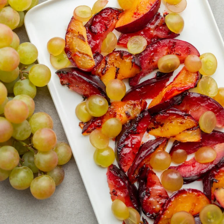 Ciruelas calientes saladas y uvas moscatel