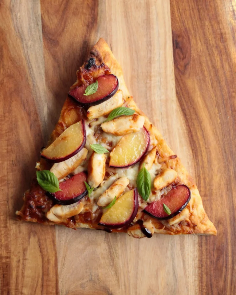 Pizza de pollo a la barbacoa con ciruela roja y negra
